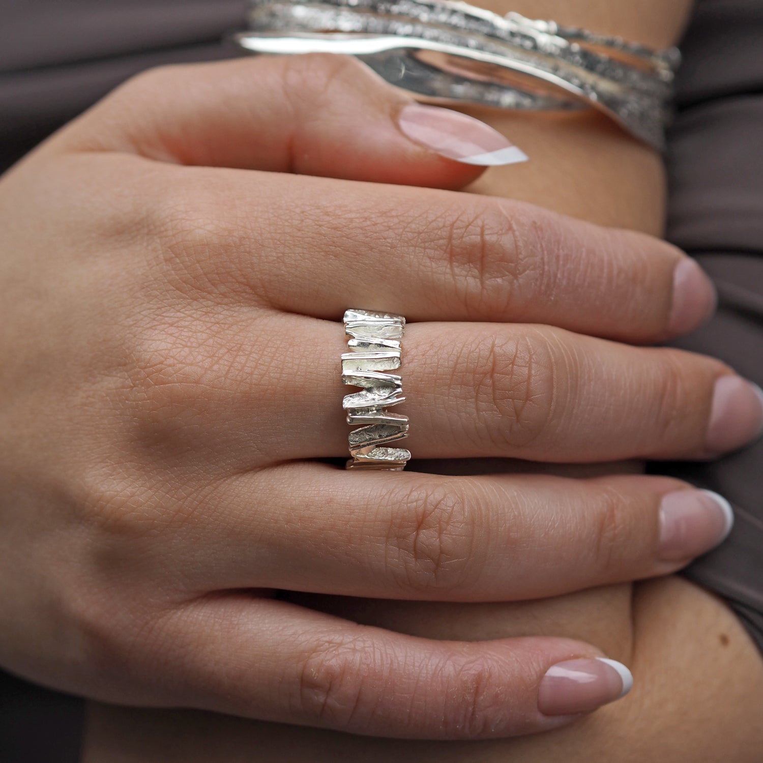 The diverse, wonderful textures and shapes of the forest have inspired this collection. Sterling silver is simply worked to create organic pieces that combine beautifully. Foresta is designed to be worn independently or layered with our other collections for a modern and edgy look. Embrace the organic beauty of the forest with our Foresta collection, where sterling silver is transformed into unique pieces that blend seamlessly together. Whether worn individually or layered, these pieces offer a modern and edgy aesthetic.
