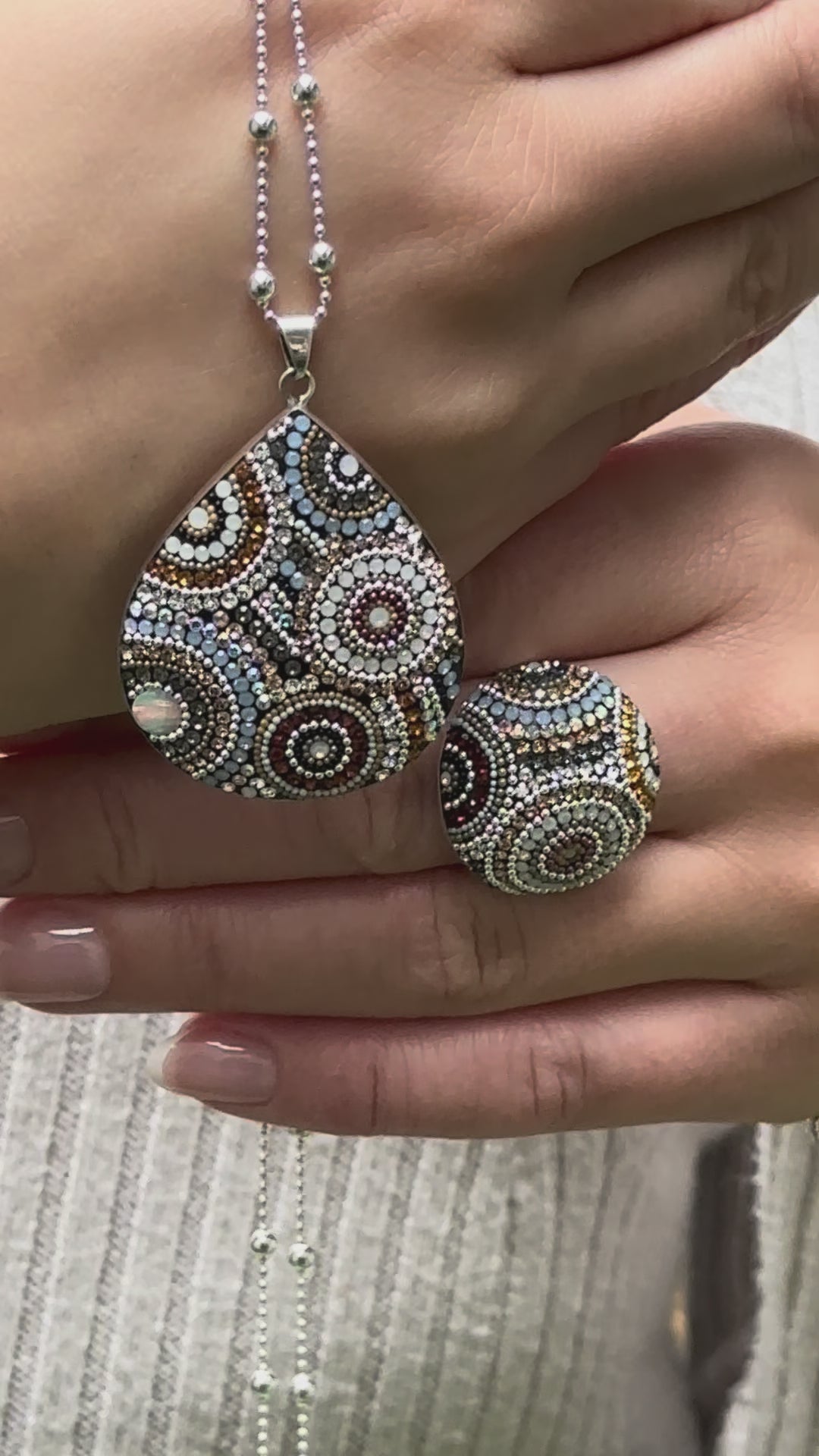 Uncover the magic of winter with the Allegra Highland Glow pendant. Skillfully designed with circular details, this elegant teardrop pendant showcases frosty blue, bronze, white and silver microbeads and crystals, capturing the breathtaking charm of the Scottish Highlands. Crafted from sterling silver and exclusive to Palenque - an enchanting collection that will capture your heart! Complete the look with coordinating earrings, rings, and bracelets.